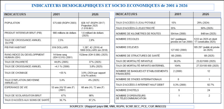 Entre 2001 et 2026, le tableau socio-économique demeure contrasté mais le pays a des marges nouvelles pour s’atteler aux défis persistants en tirant les dividendes de la paix et de la stabilité pour assoir une nouvelle trajectoire de développement.